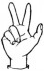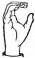На ћирилици написано САНДРА ТУШЕВЉАК састоји се из 14 слова [?]. Исписано ћириличном једноручном азбуком за глувонеме: